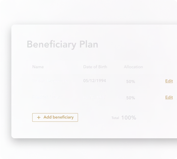 View, edit, or add a beneficiary plan at any time.